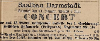 Abbildung: Konzertanzeige mit partiellem Rauchverbot im Darmstädter Tagblatt 10. Jan. 1885