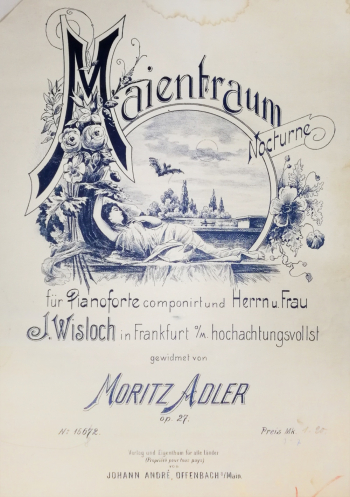 WerkeWaldidyll. Characterstück (Kl.) op. 24, Darmstadt: Mössmer (Herstellung: André) [1901]; D-OF (Korrekturabzug) <> Automobil-Marsch (Kl.) op. 25, Offenbach: André [1901]; D-B, D-OF <> Maientraum. Nocturne (Kl.) op. 27, ebd. [1903]; D-B, D-OF (s. Abb.) <> Du bist wie eine Blume (Sst., Kl.), [s. l.: s. n.]; F-Pn (Korrekturabzug) <> Vivat Frankfurt. Marsch (Kl.), Frankfurt: Wolff; F-Pn <> weitere, in der Presse genannte Werke (mit Datum der frühesten Nennung): Polka-Walzer (Orch.) [1877] <> Kriegsmarsch (Orch.) [1877] <> Trauermarsch (Kl.) [1885] <> Andacht (Kl.) [1889] <> Im Walde. Konzerstück (Kl.) (ggf. identisch mit op. 24) [1889] <> Polka equibrillistique (Kl.) [1889] <> Walderinnerung. Phantasiestück (Kl.) (ggf. identisch mit op. 24) [1889] <> Weihnachtsglocken (Kl.) [1896] <> „Und wüßten’s alle Blumen“ (Sst., Kl.) [1901] <> Am Ostermorgen (Kl.) [1902]