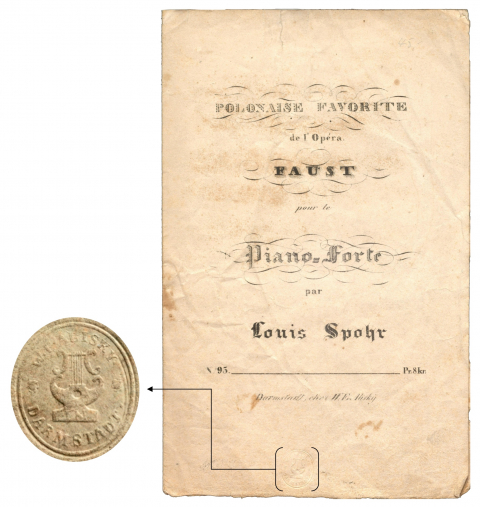 Abbildung: Titelseite der Polonaise Favorite de l’Opéra Faust (Kl.) von Louis Spohr, Darmstadt: Alisky [ca. 1832] mit Blindstempel von Alisky; D-Hbierwisch