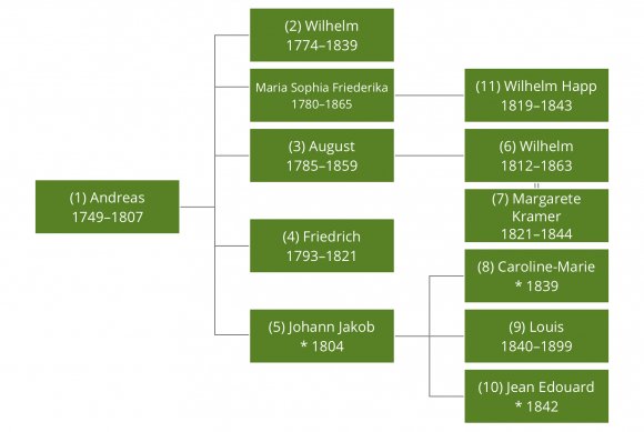 (5) Johann Jakob (Elias Lorenz) * Aspach bei Gotha 17. Dez. 1804 | † nicht vor 1877; Sohn von (1), Trompeter und Violinist