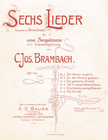 Über den Hanauer Musikverlag J. D. Bauer ließen sich nur wenige Informationen ermitteln. Möglicherweise wurde er vom Kaufmann Jean Daniel Bauer (* Hanau 6. Febr. 1878 | † ebd. 2. Aug. 1936) gegründet. In den Jahren 1900 bis 1901 erschienen knapp 50 Verlagswerke, die, fortlaufend nummeriert („J. D. B. [Zahl]“), von Oscar Brandtstätter in Leipzig gedruckt wurden. Von den vierzehn Autoren besaßen lediglich Wilhelm Aletter, Karl Friedrich Appel, Caspar Joseph Brambach und Wilhelm Stammler eine Verbindung zur Region. In den Jahren nach 1901 lassen sich kaum Aktivitäten feststellen; auch findet sich keine Nennung des Verlags im Adressbuch von 1903. 1908/09 stellte der Verlag sich „der Deutschen Musiksammlung in Berlin zur Verfügung“ (Börsenblatt 24. Apr. 1909) – diesem Umstand ist es zu verdanken, dass die gedruckten Werke fast geschlossen in D-B überliefert sind. Mit dem Jahreswechsel 1910/11 gingen die Verlagsrechte an Fritz Baselt in Frankfurt/M. über.