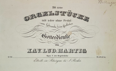 Abbildung: Franz Xaver Ludwig Hartig, 24 kleine Orgelstücke mit oder ohne Pedal zum Gebrauche beim öffentlichen Gottesdienste op. 5 der Orgelstücke, Eltville: Becker [ca. 1820/22]; D-Hbierwisch