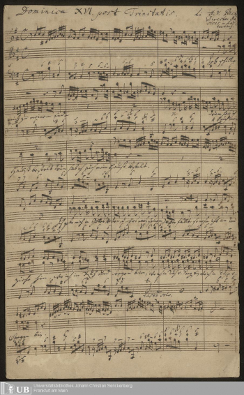 Abbildung: Kantate „Ich schicke mich zu meinem Ende “; D-F (digital; s. a. RISM ID no. 450004952) mit der Eintragung oben rechts „di H.V. Beck Director Musices in Lauterbach“