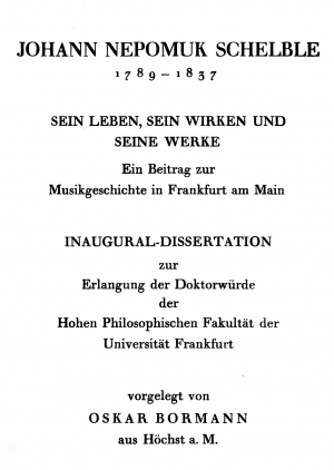 SchriftenJohann Nepomuk Schelble 1789–1837. Sein Leben, sein Wirken und seine Werke. Ein Beitrag zur Musikgeschichte in Frankfurt am Main, Diss. Frankfurt/M. 1926 (mit Lebenslauf)