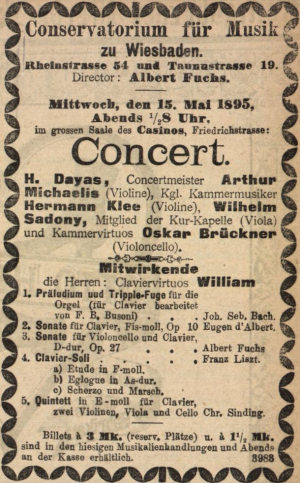 Abbildung 1: Konzertankündigung, Wiesbadener General-Anzeiger 15. Mai 1895