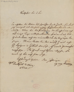 Abbildung 2: Brief Dörings an Schott, Frankfurt 3. März 1820; D-B