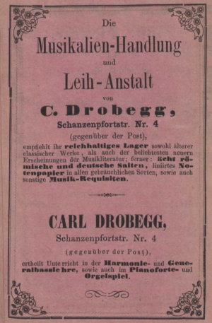 DROBEGG, CARL (FRIEDRICH ANTON) * Adenau 23. Okt. 1824 | † New York 2. Dez. 1911; Organist, Musiklehrer, Musikalienhändler