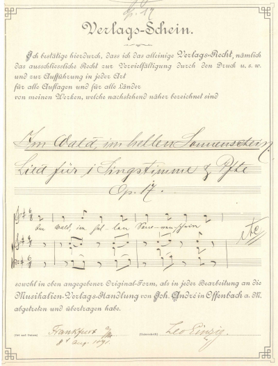 Abbildung: Verlagsschein zu op. 17; D-OF