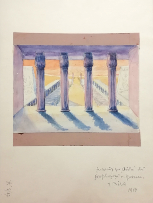 Abbildung 2: Ernst Ludwigs eigenhändiger Bühnenbildentwurf zu Verdis Aida (1914); D-DS