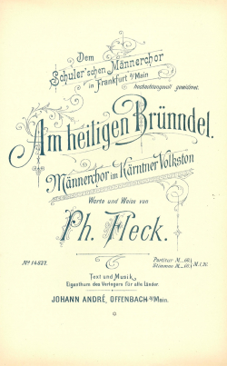 Nachrichten über die Jugend und Ausbildung des Förstersohns Philipp Fleck fehlen. 1883 lebte er als Lithograph in Mainz und übersiedelte wenig später nach Frankfurt/M. Dort engagierte sich für seinen Berufszweig im Deutschen Senefelder-Bund und als Präsident des Frankfurter Vereins der Lithographen (mind. 1891–1892). Daneben trat er als Komponist einzelner Männerchöre hervor, die er auch mit den von ihm geleiteten Gesangvereinen aufführte. Er war Dirigent des Hermanns-Vereins (Bornheim; 1891–1902 als Nachfolger von Julius Eyles und Vorgänger R[udolph?] Achenbachs), des Gesangvereins Frischauf (1890–1892; Nachf. [Arthur?] Meissner), der Frankfurter Liedertafel (1901–1907; Vorg. Fritz Hildmann, Nachf. Wilhelm Weimar), des Männer-Gesangvereins „Frankofurtia“ (1904–1908; Vorg. Hugo Herwig, Nachf. A. Goedtel) und des Frankfurter Männer-Gesangvereins (e. V.) (1906; Vorg. Georg Flecken, Nachf. Heinrich Sonntag). Dass Fleck über ein großes Netzwerk von Kontakten verfügte, veranschaulichen seine André gegenüber geäußerten Bemühungen um möglichst erfolgreiche Vermarktung seiner Werke. So bot er an, „Ihrem Frankfurter Zweiggeschäft ca. 100 Adressen von Vereinen & Dirigenten geben, mit denen ich gut bekannt bin und die zum grossen Fest schon Chöre von mir sangen.“ (Brief vom 21. Aug. 1904). Um 1909 ließ sich Fleck, inzwischen Oberlithograph, im nahgelegenen Buchschlag (heute zu Dreieich) nieder. Er war seit 1888 mit der Frankfurterin Anna Maria geb. Stahl verheiratet. Sein Bruder Ludwig Valentin war als Buchhändler in Frankfurt tätig. Es besteht keine nähere Verwandtschaft zum gleichnamigen Kaufmann und Stifter Philipp Fleck (1740–1816), nach dem eine Straße in Frankfurt benannt ist, und auch nicht zum Komponisten Fritz Fleck.