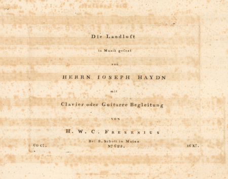 Abbildung: Titelseite der Einzelausgabe von Haydns Die Landlust mit Nennung des Bearbeiters H. W. C. Fresenius; CZ-Bu (digital)
