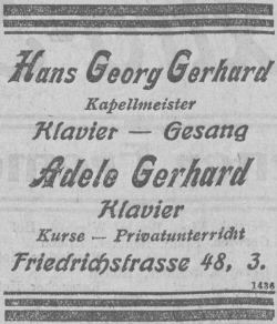 Abbildung: Anzeige des Musiklehrerpaars Gerhard (Wiesbadener Tagblatt 9. Sept. 1912 (Abend-Ausgabe), S. 11)