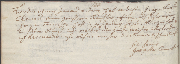 Abbildung: Eintrag Joseph Gitters im Stammbuch für Franz Joseph Clement; Österreichische Nationalbibliothek Wien (Cod. Ser. n. 308) (digital)