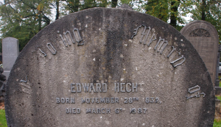 Abbildung: Grabstein Edward Hechts auf dem Southern Cemetery in Manchester (Section D N/C, No. 208), aufgenommen von Kristina Krämer im Oktober 2018