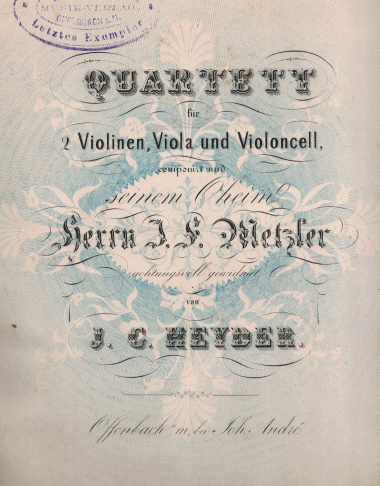Werke — Quartett für 2 Violinen, Viola und Violoncell (C-Dur; gewidmet „seinen Oheim“, dem Bankier Johann Friedrich Metzler, Ehemann der Schwester seines Vaters; aufgef. Mai 1847), Offenbach: André (in Kommission) [verm. 1847/48]; D-OF (s. Abb.) <> Ein weiteres Streichquartett (A-Dur) sowie mehrere Lieder (aufgef. Apr. 1848) blieben ungedruckt und sind verschollen.