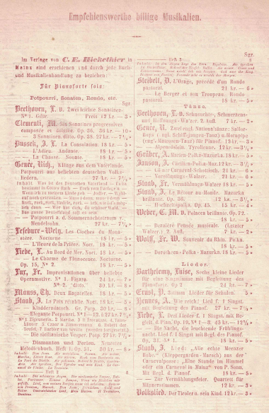 Abbildung: Verlagskatalog Kickethiers aus der Zeit um 1858; D-Kbeer
