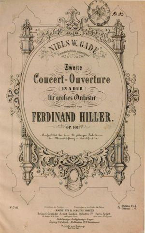 Abbildung 3: Ferdinand Hiller, Zweite Concert-Ouverture (Niels W. Gade gewidmet, aufgeführt bei dem 25jährigen Jubiläum der Mozart-Stiftung in Frankfurt/M.) op. 101, Mainz: Schott [1863]; D-Mbs