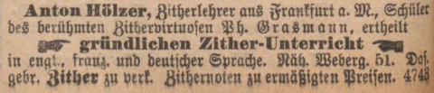 HÖLZER, (FRANZ) ANTON * Langeschwalbach (heute Bad Schwalbach) 1. Jan. 1858 | † Berlin 1893; Zitherist