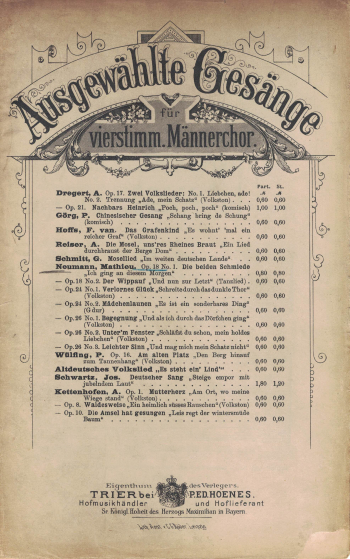 HOENES, PETER EDUARD * Wolfstein bei Kreuznach 17. Apr. 1836 | † Trier 9. März 1901; Musikalienhändler und Musikverleger