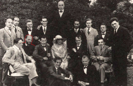 Abbildung: Komponisten und Mitwirkende beim Kammermusikfest in Donaueschingen 1923 (von links, obere Reihe, stehend: Licco Amar, Heinrich von Wesdehlen, Hans Münch, Robert Oboussier, Max Egon II. Fürst zu Fürstenberg, Frank Wohlfahrt, Hermann Reutter, Walter Kaspar, Maurice Frank; mittlere Reihe, sitzend: Philipp Jarnach, Johann Friedrich Hoff, Alois Hába, Tiny Debüser, Fidelio Finke, Bruno Stürmer; untere Reihe, sitzend: Heinrich Burkard, Paul Hindemith), in: Das interessante Blatt (Wien) 16. Aug. 1923