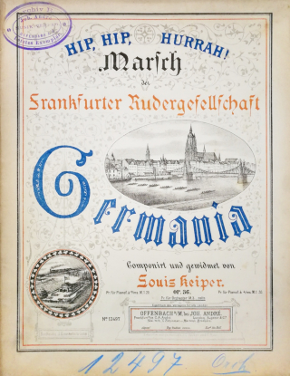 Abbildung 2: Titelseite zu Hip, hip, hurrah! Marsch der Frankfurter Rudergesellschaft Germania op. 36; D-OF