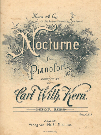 Werke (bis in Höhe von etwa op. 730 und fast ausnahmslos in den USA publiziert; hier nur Auswahl der in Deutschland erschienenen) — Nocturne (Kl.) op. 5 („Herrn A. Coy in dankbarer Verehrung gewidmet“), Alzey: Medicus [ca. 1892]; D-BABHkrämer (s. Abb.) <> Careless Elegance (Kl.) op. 158, Offenbach: André [1908]; D-OF