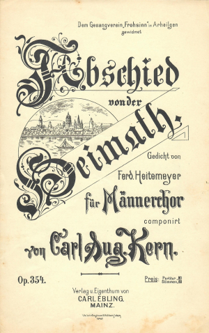 Abbildung 2: Titelseite zu Abschied von der Heimath op. 354; D-BABHkrämer. Man wird vermuten dürfen, dass Titel und Gestaltung in Bezug zur Biographie Friedrich August Kerns (2) stehen.