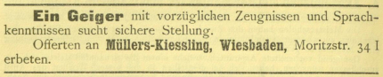 KIESSLING (auch KIEẞLING), ARTHUR (WILHELM) HEINRICH * Koblenz 22. Juli 1866 | † Frankfurt/M. 25. Febr. 1927; Violinist, Dirigent, Musiklehrer