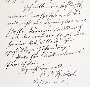 Abbildung: Brief Knögels an André vom 3. Juni 1906 (Ausschnitt); D-OF