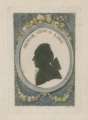 Abbildung 1: Johann Georg („Giov[anni] G[iorgio]“) Lang; Kupferstich nach einem Schattenriss von Heinrich Carl Boßler, Speyer [1784]; D-BNba (digital) (mit freundlicher Genehmigung)