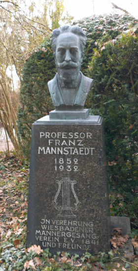 Franz Mannstaedt, Sohn eines Hagener Fabrikinspektors, lebte seit 1865 bei seinem älteren Bruder Wilhelm (Heinrich Louis) (* Bielefeld 20. Mai 1837 | † Steglitz 13. Sept. 1904; Bühnendichter, Dirigent, Komponist) in Berlin und studierte Klavier (Heinrich Ehrlich) sowie Komposition (Friedrich Kiel) am Stern’schen Konservatorium; bei der öffentlichen Abschlussprüfung (1869) wurde ihm in beiden Fächern der 1. Preis zuerkannt. Anschließend trat er als Pianist und Klavierbegleiter öffentlich auf. Gegen Ende des Jahres 1873 übernahm er die Leitung der Konzerte des Vereins für Kunst und Literatur (Kunstverein) in Mainz, von wo aus er 1875 nach Bayreuth reiste, um sich auf Richard Wagners Wunsch („Mannstaedt ist da? Desto besser!“; Brief an Karl Eckert, Bayreuth 4. Okt. 1875) als Korrepetitor an den Vorproben zur ersten Ring-Aufführung im Festspielhaus – bei dessen Grundsteinlegung (1872) war er bereits zugegen gewesen – zu beteiligen. Anfang 1876 folgte Mannstaedt einem Ruf als Dirigent der Berliner Sinfoniekapelle; noch im selben Jahr gründete er den Gesangverein für classische Musik („Mannstaedt-Verein“) und wurde Klavierlehrer an seiner früheren Ausbildungsstätte; „in Anerkennung seiner hervorragenden Leistungen als Lehrer des Klavier- und Partiturspiels“ verlieh ihm die Königliche Akademie der Künste im Dezember 1881 den Professorentitel (Acta betr. Gutachten über die Ertheilung des Professorentitels, Bl. 72). Die Berufung zum Hofkapellmeister unter der Intendanz von Hans von Bülow führte ihn zu Beginn des Jahres 1882 nach Meiningen, doch kehrte er trotz der 1884 garantierten lebenslangen Anstellung und einer gleichzeitigen Ordensverleihung im Frühjahr 1885 nach Berlin zurück, da ihm die Leitung des Philharmonischen Orchesters (der vormaligen Sinfoniekapelle) erneut und unter vorteilhafteren Bedingungen angetragen worden war. Obwohl er durch einen Dreijahresvertrag an Berlin gebunden war, wurde Mannstaedt bereits um die Mitte des Jahres 1886 im Zusammenhang mit den Querelen um den Wiesbadener Theaterkapellmeister Carl Reiß via Pressemeldungen als dessen Nachfolger ins Spiel gebracht; er trat die Stelle jedoch erst im Oktober 1887 offiziell an, nachdem er zuvor im Wechsel mit August Langert (1836–1920) aus Coburg interimistisch (und neben seinen Verpflichtungen in Meiningen) die Leitung der Konzerte innegehabt hatte. Vom Freudenberg’schen Conservatorium wurde er zudem als Klavierlehrer gewonnen. Nachdem Mannstaedt im April 1893 ein weiteres Mal an seine frühere Stelle in Berlin zurückgekehrt war sowie während der Sommermonate die Kurkonzerte in Scheveningen geleitet hatte, kam es um die Mitte des Jahres 1897 zu einem bemerkenswertem Ämtertausch: Während Joseph Rebicek, der an seine Stelle in Wiesbaden getreten war, ihm in dessen Funktion bei den Philharmonikern nachfolgte, nahm Mannstaedt nun endgültig in Wiesbaden seinen Wohnsitz. Als Kapellmeister des Königlichen Theaters war er von Oktober 1897 bis zu seiner Pensionierung 1924 hier tätig; sein Nachfolger wurde Otto →Klemperer. Außerdem trat er – wie zuvor bereits in Meiningen und Berlin – bei zahlreichen Gelegenheiten als Pianist, Kammermusiker (u. a. mit Oskar Brückner) und Liedbegleiter (dies teils auch außerhalb, etwa 1906 in Limburg) in Erscheinung; er setzte seine Lehrtätigkeit am Conservatorium fort und fungierte außerdem seit 1902 als Nachfolger von Johann Baptist Zerlett als Dirigent des Wiesbadener Männergesangvereins sowie seit 1911 als Mitglied der Musik-Kommission im Verein der Künstler und Kunstfreunde.