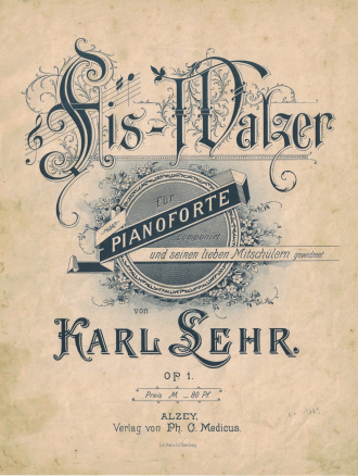 Abbildung: Titelseite der Medicus-Ausgabe von Karl Lehrs Fis-Walzer op. 1 mit Verlagsnummer 5 [1891]; D-Kbeer