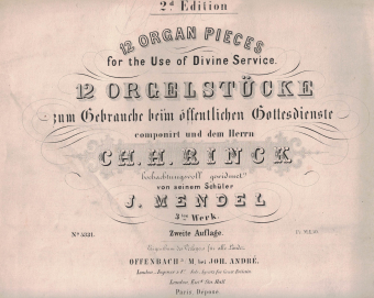Werke (Auswahl) — 12 Morceaux (Org.) op. 3, Offenbach: André [1830; 2. Auflage ca. 1860]; D-Kbeer (s. Abb.); Préludes (Org.) op. 19, ebd. [ca. 1868], D-OF <> weiterhin Lieder und Chöre sowie pädagogische Schriften (CH-BEl)