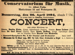 Abbildung 2: Konzertankündigung, Wiesbadener General-Anzeiger 26. Apr. 1894