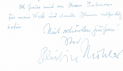 Abbildung: Ausschnitt einer an Hubert Unverricht gerichteten Briefkarte Mohlers als Begleitschreiben zur Übersendung seines Werkverzeichnisses für MMM1, Frankfurt 10. Sept 1971; D-Kbeer