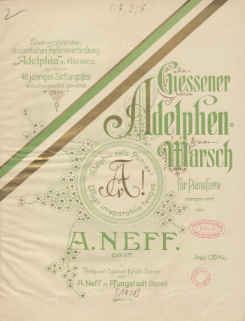 Abbildung: Titelseite des Giessener Adelphen-Marschs op. 47; D-B