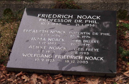 (2) Wie ihr Bruder gehörte auch Elisabeth Noack (seit 1911) dem Darmstädter Schülerkreis von Friedrich Rehbock an. Nach ihrem musikwissenschaftlichen Studium in Berlin (seit 1917; Promotion 1921 mit einer Arbeit über Georg Christoph Strattner) arbeitete sie als Kantorin und absolvierte eine Ausbildung als Musiklehrerin (Examina 1922 und 1925). Seither war sie vor allem in Kiel als Musiklehrerin tätig und kehrte nach ihrer Pensionierung 1957 nach Darmstadt zurück. Sie veröffentlichte zahlreiche Bücher, Aufsätze und Artikel zu musikpädagogischen und musikhistorischen Themen, darunter die Musikgeschichte Darmstadts vom Mittelalter bis zur Goethezeit (Mainz 1967). Der Elisabeth-Noack-Platz in Darmstadt ist nach ihr benannt (1997).