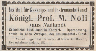 Abbildung: Anzeige Nolis, in: Frankfurter Musik- und Theater-Zeitung 1. März 1907