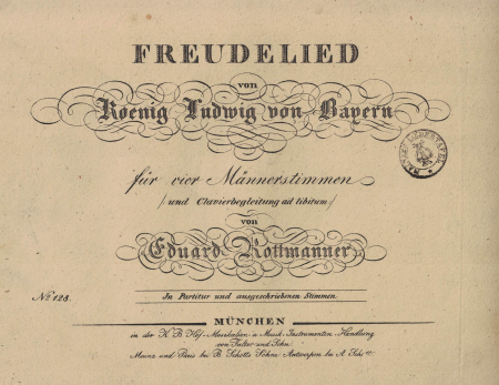 Werke (Auswahl, chronologisch; s. außerdem das Verzeichnis bei Deny und s. RISMonline) — 6 Walzer (Kl.), Nürnberg: Buchner [1817] <> 7 deutsche Tänze (Kl.) op. 1, ebd. [1818] <> Musikalische Gedanken und Versuche des Eduard Rottmanner in seinem 8. Lebensjahr, comp. im Jahre 1818 op. 2, ebd. [1821]; D-Mbs <> Frohe Empfindungen am Vorabend der Regierungsjubelfeyer unseres allgeliebten Königs Max Joseph, Nürnberg: [s. n.] [1824]; D-Mbs, GB-Lbl <> Freudelied „Lasst das unfruchtbare Denken“, von König Ludwig von Bayern (4 Mst., Kl. ad lib.), München: Falter [1829]; ehemals D-B, D-Mbs, D-MZl (s. Abb.) <> Lehrschule der Tugend oder Darstellungen aus dem Leben Jesu […] in Musik gesetzt, München: Rösl 1829; I-BZap <> Deutsche Messe in C (4 Sst. m. fig. Org. bzw. 4 Sst., 2 Vl., 2 Hr., Org.), Augsburg: Lotter [1832] <> National-Gesang der Neugriechen (Sst., Kl./Git.), Augsburg: Lotter [1833] <> mit Jakob Seiff: Griechischer Favorit-Feldschritt (Kl.), München: Falter [1833] <> 3 Ave Maria op. 3 (4 Sst., 2 Vl., Va., B., Org., 2 Hr. ad lib.), Augsburg: Lotter [1833]; D-F <> Der Schwanen-Gesang (Sst., Kl./Git.), ebd. [1833] <> Die Sendlinger-Schlacht romantisches Gedicht von Dr. S. Daxenberger (aufgef. am 2. Apr. 1833 bei Aufstellung des Monuments zum Andenken an gefallene Landesverteidiger; entspricht u. U. dem Hellenischen Kriegerlied) <> Hellenisches Kriegerlied „Auf vom Heerd!“ (Sst., Kl./Git.), München: Falter [1834]; D-Mbs <> Melodienbuch zum Speyrer Diöcesan-Gesangbuch, hrsg. mit V. Zahm, Landau: Raab 1843; D-Mbs, D-SPlb, D-SPp – 2. von Johann Baptist Benz vermehrte u. verb. Aufl., Speyer: Kleeberger 1868; D-Mbs (digital), CH-SGs, D-SPlb, D-SPp – 3. Aufl., Speyer: Bregenzer 1861; D-Gl, D-SPp <> Messe A-Dur (4 Sst., Org.), München: Falter [1845]; D-F, D-Mbs (digital)