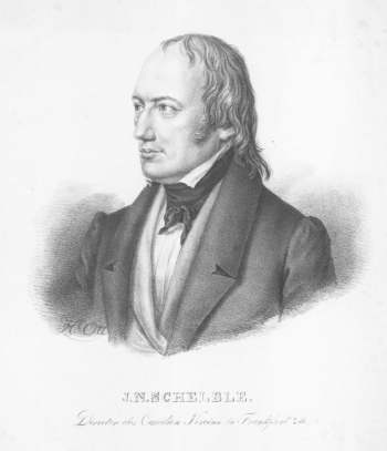 Literatur — Friedrich Chrysander (und Wigand Oppel), Johann Nepomuk Schelble – der Gründer des Cäcilien-Vereins in Frankfurt a. M., in: AmZ Nr. 45–49 (4. Nov.–2. Dez.) 1868 <> Oskar Bormann, Johann Nepomuk Schelble 1789–1837. Sein Leben, sein Wirken und seine Werke, Diss. Frankfurt/M. 1926 <> Birgit Grün, Art. Schelble, in: MGG2P