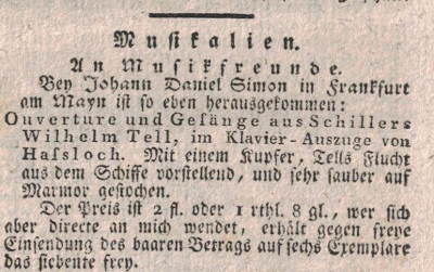 Quellen — KB Frankenthal, Frankfurt <> Kaiserlich privilegirter Reichs-Anzeiger (Gotha) 5. Juni 1805 (Abb. aus D-Kbeer); Frankfurter Presse passim