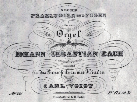 Werke — Sing-Uebungen, Hamburg: Meissner 1862 – 2. Aufl. 1863; D-B – 6. Aufl. 1889; D-Hu (digital) <> Choräle für zwei Soprane und Alt, zum Gebrauche für Schulen, Hamburg: Meissner 1872 – 4. Aufl. 1876; 7. Aufl. 1890; D-Hu (digital) <> Bearbeitung: Johann Sebastian Bach, Sechs Praeludien und Fugen für die Orgel (Kl. 4ms), Frankfurt: Hedler [1833]; CH-Bm, CH-Zz, D-B, D-Kbeer (s. Abb.) – Rezension: Didaskalia 24. Mai 1833 (Franz Xaver Schnyder von Wartensee)