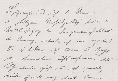 Abbildung 2: Bewerbung um die Dirigentenstelle in Mainz, Berlin 30. Dez. 1890 (Ausschnitt); D-MZl: „Bezugnehmend auf die Annonce in der ‚Allgem. Musikzeitung‘ betr. die Neubesetzung der Dirigentenstelle in Mainz, erlaube ich mir ergebenst Sie zu bitten, mich unter die Zahl der Bewerber aufzunehmen. Als Rheinländer zieht es mich gewaltig wieder zurück nach dort.“