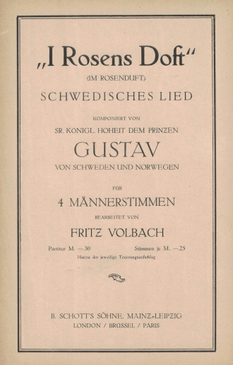 Werke — Vorbemerkung: Die Verzeichnisse von Trott (S. 184–187) und Blindow (S. [197]–206) sind trotz ihres Umfangs nicht ganz vollständig und auch nicht ganz frei von v. a. bibliographischen Irrtümern. Zum gegenwärtigen Zeitpunkt kann jedoch eine allen Ansprüchen genügende Erfassung nicht geleistet werden, weswegen wir uns (vorläufig) bei den meisten Werkgruppen mit einer Auswahl begnügen. Im Gegensatz zu den Vorarbeiten enthält unser Verzeichnis Fundorte, belastbare Datierungen sowie für die Region relevante Angaben. – gedruckt mit Opuszahl: Fantasiestück (Vl., Orch.) op. 8, Berlin: Sulzer [1889]; CZ-Pm, D-B, D-Bhm <> Zwei leichte Stücke aus dem Weihnachts-Märchenspiel „Die Heinzelmännchen“ (Kl. 4ms) op. 9, Charlottenburg: Michow [1889]; D-MÜu <> Impromptu (Kl.) op. 10, ebd. [1891]; D-B <> Festweihe. Marsch (Kl.) op. 11, ebd. [1891]; D-Mbs (Bearb. Kl. 4ms) <> Reigen. Alte und neue Troubadour-Lieder (3st. Fch., T, Kl.; „Meiner lieben Frau gewidmet“), Mainz: Schott [1892]; ehem. D-B, D-Mbs, D-MZl <> Ostern. Symphonisches Gedicht (Orch., Org.; Widmung an Karl Klindworth; UA Berlin 1892 unter Franz Mannstaedt) op. 16, ebd. [1895, 1896]; D-B (Part. u. KlA.), D-F (Part.), D-KNh (Part.), D-Mbs (Part.; digital), D-MÜu (Part.), D-MZl (Part., St.), D-MZs, D-Sl, D-SWl (KlA.) <> Kleine Ciacona (Org.) op. 17, in: Orgelkompositionen zum Konzert- und gottesdienstlichen Gebrauch, Bd. 1, hrsg. von Willy Herrmann, Leipzig: Breitkopf & Härtel [1905]; D-Dl, D-MGhi <> Vom Pagen und der Königstochter (Soli, Chor, Orch.; UA Mainz 9. Febr. 1898 (nicht Köln 1899) unter Volbach; Widmung an Eugen d’Albert) op. 18, ebd. [1898]; D-DÜl, D-KNh, D-Mbs, D-MZl, D-Sl <> Drei Lieder (Sst., Kl.; Im Schauer der Wonne, Am See, Herbstleuchten) op. 20, Mainz: Schott [1899]; D-B <> Es waren zwei Königskinder. Symphonische Dichtung für grosses Orchester op. 21 („Otto Lessmann in Freundschaft gewidmet“; UA Mainz Dez. 1900), Leipzig: Breitkopf & Härtel [1900]; A-Wn, A-Wst, B-Amp, CH-Bu, D-B, D-HEs, D-Mbs, D-MZs <> Fest-Cantate (nach Worten der heiligen Schrift) zur 500. Geburtsfeier des Johannes Gutenberg zu Mainz am 24. Juni 1900 (gem. Chor, Orch., Org.; „Der Stadt Mainz!“; UA Mainz 24. Juni 1900 unter Volbach) op. 22, Mainz: Schott [1900]; D-B, D-MÜu (digital), D-MZl, D-MZs <> Drei Lieder (Sst., Kl.; Morgen, Gesang in der Mondnacht, Frühlingsläuten) op. 23, Leipzig: Breitkopf & Härtel [1901]; D-B, D-Hhfmt, D-LEsta (auch Stichvorlage) <> Quintett (Ob., Klar., Hr., Fag., Kl.) op. 24, ebd. [1901]; B-Amp, CH-BEl, CH-Zz, D-B, D-Bhm, D-Fh, D-LEsta, D-MÜu, D-WRz, F-Pn, GB-Ltc <> Zwei Lieder (Sst., Kl.; Liebesjauchzen, Nacht am Springbrunnen) op. 25, ebd. [1901]; D-B, D-LEsta (auch Stichvorlage) <> „Raffael“ Drei Stimmungsbilder angeregt durch Raffael’sche Gemälde (Chor, Orch., Org.; „Dem Andenken Franz Wüllner’s“ – I. Madonna di Foligno, II. Madonna di Granduca, III. Madonna di San Sisto; UA Basel Juni 1903) op. 26, Mainz etc.: Schott [1903]; CH-Bu, D-B, D-F, D-KNh, D-MÜu, D-MZl, D-ROTTd, D-SPlb, GB-Lbl <> Zwei Lieder (Sst., Kl.; An deinem süssen Herzen, Traumbilder) op. 28, Leipzig: Breitkopf & Härtel [1904]; D-B <> Alt Heidelberg, du feine. Ein Frühlingsgedicht (Orch.; UA Mainz 1905 unter Volbach) op. 29, ebd. [1904]; D-B, D-HEs, D-KNh, D-MZs, GB-Lbl <> Der Troubadour. Ballade (Mch., Bariton, Orch., „Komponiert für das 25jährige Jubiläum des Mainzer Sängerbundes“) op. 30, Stuttgart: Grüninger [1905]; CH-Bm (KlA.), D-B (KlA.), D-Dl (KlA.), D-MZl (St.), D-SPlb (KlA.) <> Am Siegfriedbrunnen. Ein Stimmungsbild (Mch., Orch.; zum 75. Jubiläum der Mainzer Liedertafel) op. 31, Leipzig: Hug [1906]; CH-BEl (Part., KlA.), D-B (KlA.), D-Dl (KlA.), D-MZl (auch autogr. Part.) <> Rheinlied (Mch.; Widmung an Ludwig Oppenheim und Gemahlin) op. 32; Leipzig: Hug 1907; CH-BEl, D-MZl (St. handschr.), D-MZsa (auch Part.-Autogr.) <> Symphonie op. 33 (UA Mainz 21. Okt. 1908 unter Volbach), Leipzig/Zürich: Hug [Jan. 1909]; CH-BEl, D-B, D-Mbs, D-MZl, GB-Lbl <> Die Kunst zu lieben. Musikalisches Lustspiel op. 34 (Libretto: Volbach; UA Düsseldorf 28. Okt. 1910; KlA.), Leipzig: Schultz [1910]; CH-Bu, D-B, D-Dl, D-Mbs, D-Sl – daraus Serenade und Ständchen einzeln, ebd. [1910]; D-B, D-Dl, US-Wc (digital; digital) <> Die Nachtigall („Wie die grauen Weiden“; Sst., Vl., Vc,. Kl., Hrf. ad lib.) op. 35, Leipzig: Junne [1910]; D-B, D-Dl <> Quintett (2 Vl., Va., Vc., Kl.; UA Frankfurt 16. Nov. 1911) op. 36, Leipzig: Hug [1912]; A-Wmk, CH-Zz, D-B, D-Mbs, D-MÜs <> Musikanten-Trinklied („Ein Musikus wollt’ fröhlich sein“; Mch. bzw. Bariton o. B, Orch. bzw. Kl.), ebd. [1912]; CH-BEl, D-B <> König Laurins Rosengarten. Eine deutsche Heldenmär (Text: Volbach; Mch., Bariton, Orch.; UA Wiesbaden 19. Nov. 1913 unter Mannstaedt) op. 38 (KlA.), Leipzig/Zürich: Hug [1913]; A-Wn, A-Wst, CZ-Bu, D-B, D-BNms, D-CHs, D-Dl, D-DÜk, D-Fh, D-KA, D-Mbs, D-Sl, D-WIl <> gedruckt ohne Opuszahl (Auswahl; s. a. Trott und Blindow): neben einzeln und in Paaren insb. 1883–1890 in Berlin veröffentlichten Liedern sowie Chören und Klavierstücken sind aus späterer Zeit zu nennen: Hymne an Maria aus Dantes Paradies (gem. Ch., Solo-Vl., Celesta, Hrf., Org./Harm.), Münster: Bisping [1921]; D-B, D-MÜu <> Die Mette von Marienburg (Mch., Knabenst., S, T, Orch., Org./Harm.), Leipzig/Zürich: Hug 1927; u. a. A-Wn, CH-Bu, D-B, D-Mbs, D-MZs, D-Sl <> Grenzen der Menschheit (Mch., Soli, Orch.), Mainz: Schott [1931]; D-B, D-Mbs (Part., KlA., St.) <> unveröffentlicht (Auswahl; s. a. Trott und Blindow sowie die unter Quellen genannten Nachlassteile): Oratorium Auferstehung (Soli, Chor, Orch.; im Wesentlichen zusammengestellt aus Ostern op. 16 und dem Adagio molto der Symphonie op. 33 – für die neukomponierten Rezitative verwendete Volbach teils eine von ihm erfundene Höllensprache, wobei allerdings die Oberteufel deutsch sprechen (vgl. Beer 1987, S. 127–128); UA Hagen 1. Apr. 1930); D-MÜu (Autograph) <
