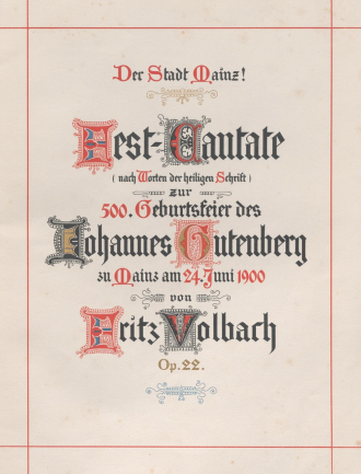 Abbildung 3: Titel der Fest-Cantate zum (vermeintlichen) 500. Geburtstag Johannes Gutenbergs op. 22; D-MÜu