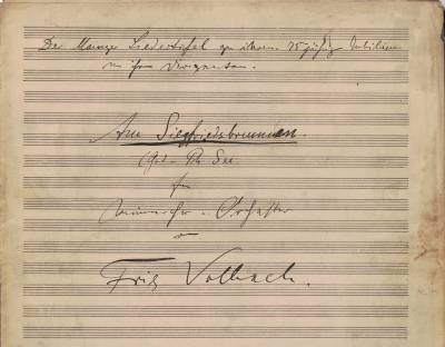 Abbildung 4: Am Siegfriedbrunnen; Titel der autographen Partitur des der Mainzer Liedertafel 1906 zum 75. Geburtstag gewidmeten „Stimmungsbilds“; D-MZl