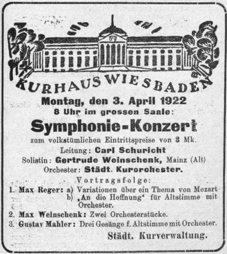 Abbildung: Konzertanzeige Wiesbadener Bade-Blatt 1. Apr. 1922