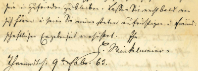 Abbildung 2: Aus einem Brief Hermann Adolph Winkelmeiers an Anton Schindler in Bockenheim, Tharandt 9. Febr. 1863; D-BNba